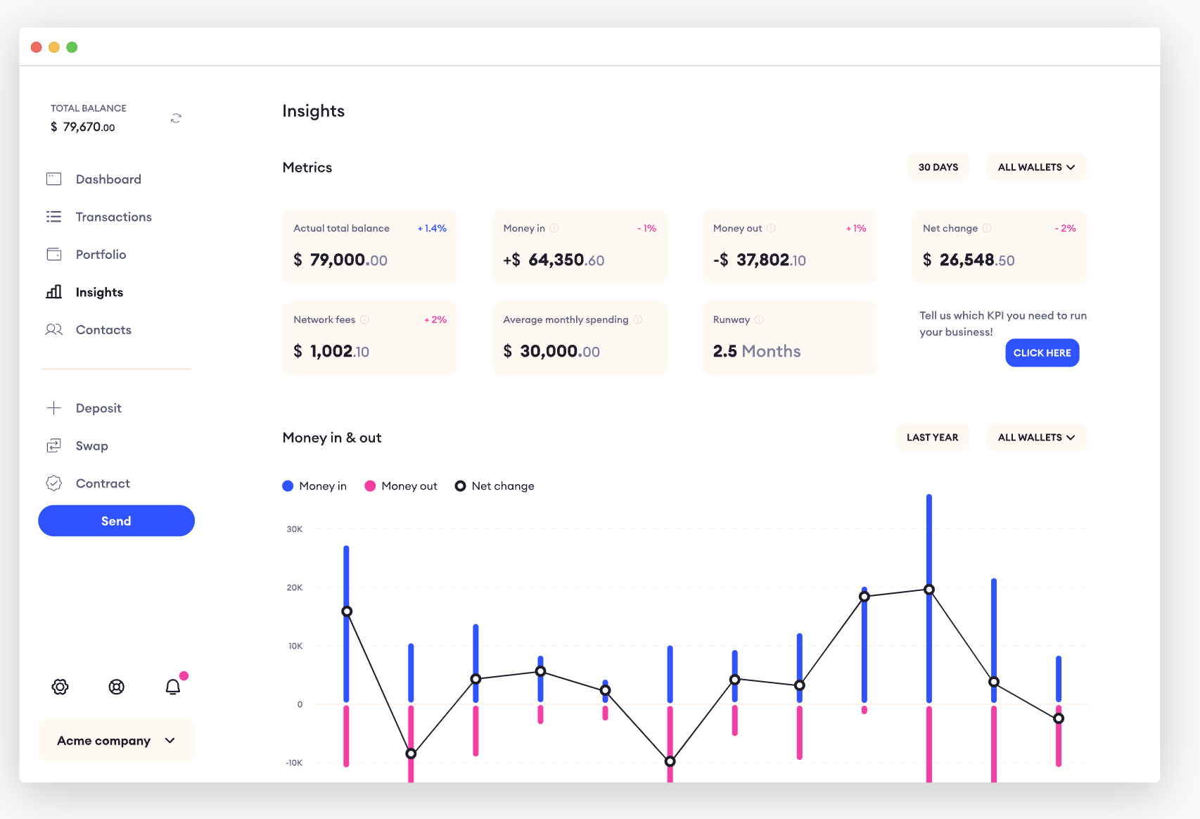 Both Utopia and Multis are great systems that even some of the biggest DAOs from FWB all the way to Axie Infinity use! Both platforms provide charting for funds coming in and out, alongside the ability to mange accounting and expenses.